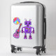 Sticker Cute Purple Robot with Peace Sign and Guitar