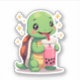 Sticker Cute turtle drinking boba. Funny Boba Turtles Love