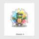 Sticker Cute Turtle Wearing Sunglasses Paint Splash Sea An