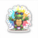 Sticker Cute Turtle Wearing Sunglasses Paint Splash Sea An