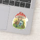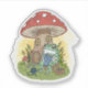"A charming cottagecore illustration of a happy frog knitting a blue scarf while sitting outside its whimsical mushroom house. This cozy, nature-inspired design captures a moment of peace and creativity, perfect for adding a touch of whimsy and charm to any product, from apparel to home decor."