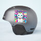 Mignonne, lunatique, blanc caricature chaton avec de grands yeux bleus, des oreilles roses et portant un collier coloré clair. Elle a une jolie queue rayée bleue, rose et blanche et une bande bleue sur la tête. L'arrière - plan est principalement violet avec des planètes, des nuages, des étoiles et des fleurs dans un mélange de couleurs audacieuses, vives et vives. Idéal pour tous ceux qui aiment les chats et l'espace.
