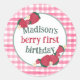 Ces stickers de fête d'anniversaire de fraise sont parfaits pour un doux 1er anniversaire de la baie de fille! Il possède de nombreuses baies et un motif en plaid rose pour une fête à la ferme ou au pique-nique. C'est une excellente option pour étiqueter les faveurs, embellir les enveloppes ou décorer ! © 2023 Tea Olive Co.