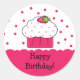 Cupcake rose mignonne Happy Anniversaire autocollant. Idéal pour l'étiquette de faveur d'anniversaire ou merci note enveloppe sceau! Customisez avec votre invitation d'anniversaire et vous êtes tous prêts à partir ! Invitations et timbres-poste correspondants disponibles dans notre boutique www.celebrateitinvites.com.