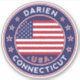 Darien Connecticut, autocollant de la ville de Darien avec le drapeau des États-Unis, forme arrondie