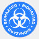 Biodanger - autocollant bleu vif avec lettrage blanc et symbole biodanger.
