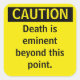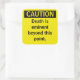 Petit Sticker d'avertissement de prudence parodique. La mort est éminente au-delà de ce point. Ajoutez un peu d'humour à votre programme de l'environnement de santé et de sécurité.