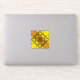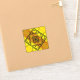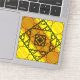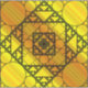 Trois styles de fractales dessinées à la main, y compris les triangles Sierpinski, les joints apolloniens et un design carré à thème similaire, composent les couches de ce mandala géométrique, superposées sur un dégradé jaune et orange vif.