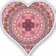 Un coeur classique de la Saint-Valentin masque un mandala concentrique avec des couches de motifs de vacances tels que des fleurs, des flèches de Cupid et des coeurs dans différents styles, y compris les classiques, paisley et tissés.