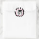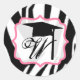Un autocollant avec un arrière - plan d'impression zèbre noir et blanc. Illustration d'un capuchon de graduation noir à l'intérieur d'un cadre de support rose. Personnalisez avec la lettre de votre initiale. Recherchez les invitations correspondantes chez Jill's Paperie.
