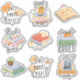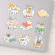 9 autocollants de livres avec chats, chiens, café et citations.