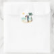 Comprend 20 petits autocollants sur une feuille. Illustration de charme d'un couple en tenue mariage posé sur une plage de sable fin bordée d'un palmier et d'un océan en arrière - plan, parfait pour les couples et les amateurs de plage !