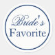 Sticker de mariage "Favori de la mariée" en bleu marine. Stickers pour n'importe quelle occasion mariage - fête de fiançailles, dîner de répétition, cérémonie, cocktail, réception de mariage, brunch du dimanche, douche nuptiale, soirée bachelorette, fête des poules et plus ! Montrez sa collation préférée ou offrez-la comme une faveur à vos invités. Disponible en différentes tailles de couleurs et de polices