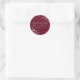 Élégant autocollant de remerciement rond avec un riche arrière - plan bordeaux, des accents floraux dorés et des lumières à cordes brillantes. Personnalisez-vous avec vos noms et votre date de mariage - parfait pour sceller des sacs de faveur, des enveloppes ou des boîtes cadeaux à la chute rustique ou des mariages romantiques en soirée.