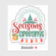 Un autocollant carré vibrant rayonne l'esprit de vacances avec un design coloré avec un arbre de Noël, rennes, et des salutations joyeuses. Des lumières lumineuses et des éléments festifs créent une atmosphère joyeuse, parfaite pour célébrer la saison des dons.