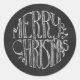 Cet autocollant simple et sucré en noir et blanc présente "Joyeux Noël" dessiné à la main en cercle, contre un arrière - plan de style noir foncé. Parfait pour coller sur les cadeaux de Noël pour ajouter une touche de plaisir sophistiqué!