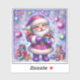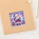 Célébrez la magie de la saison avec un autocollant festif délicieux qui met en valeur un joyeux Père Noël, orné d'une tenue violette vibrante.