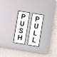 Gras blanc avec texte noir poussez et tirez des autocollants de porte pour n'importe quel bâtiment, la vente au détail, le magasin, le restaurant, l'appartement, etc. Décal de vinyle pour toute porte en verre ou en métal.