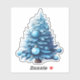 Un sapin de Noël bleu vif se dresse, décoré d'ornements bleu brillant et de délicats accents dorés.
