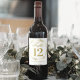 Ces beaux stickers vinyle sont conçus comme des étiquettes de bouteilles de vin qui double comme des numéros de table pour votre réception de mariage. Elles présentent un design élégant avec des lettres de script sophistiquées et une bordure de dentelle en fausse feuille d'or. Il y a de la place pour les noms du couple, la date du mariage, et le type de vin ou d'autres contenus de bouteilles. Un moyen intelligent d'ajouter beauté et style à votre réception de mariage tout en facilitant la recherche de tables par vos invités.