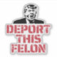 Cette conception anti-Trump utilise un style grunge en rouge et noir frappant. Une image peu flatteuse du condamné est accompagnée d'un texte rouge gras qui dit DÉPORTER CE FELON. Nous devons envoyer des ICE goons masqués au 1600 Pennsylvania Avenue.