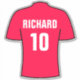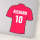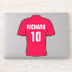 Autocollant de football. Design de maillot de football en rouge. Personnalisé avec votre choix de nom et de numéro. 8 x 8 pouces.