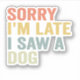 Sticker Désolé, je suis en retard J'ai vu un chien drôle a