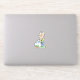 Autocollant vinyle personnalisé avec une illustration d'un petit jardinier chèvre mignon qui arrose ses légumes avec un arrosoir, motifs de dessins animés sur le thème du jardinage pour enfants