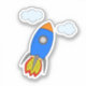 Roquette de dessin animé et nuages avec effet papier journal. Design original. Autocollants personnalisés. Idée cadeau pour les enfants qui aiment la science-fiction et les aventures spatiales.