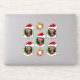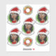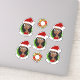 Ensemble de sept autocollants en vinyle coupé avec l'illustration d'une jeune Africaine-Américaine souriante, qui porte un casquette de Père Noël rouge, sur un arrière - plan vert ; cinq autocollants de la femme et deux autocollants avec une couronne de Noël ; avec un modèle texte personnalisable pour votre nom ou message