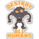 Illustration d'un robot en colère prêt à se battre contre Destroy All Humans. Mots clés : robot, droid, androïde, guerrier, bataille, gladiateur, combat, moyen, en colère, fou, orange, noir, machine, futur, intelligence artificielle, dessin animé, vecteur, mauvais, cyborg, détruire, humains
