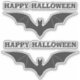 Autocollants de contour avec deux chauves-souris volantes, principalement noir solide (sauf pour les accents sur les ailes). Il y a aussi deux salutations Happy Halloween, avec Eyeballs comme police par défaut. Utilisez par exemple pour vos cartes Halloween et d'autres fins de décoration.