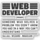 Citations drôles de développeur Web "Développeur Web quelqu'un qui résout un problème que vous ne saviez pas avoir d'une manière que vous ne pouvez pas comprendre". Obtenez ce design de développeur Web drôle comme un cadeau amusant pour une maman, un papa ou un ami génial.