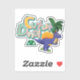 Un autocollant de dino mignon pourrait présenter un petit dinosaure bondé aux grands yeux étincelants et à l'expression joyeuse. Le dino peut être de couleur pastel, comme vert menthe ou rose pâle, avec de minuscules bras tendus, des joues rondes et une pose ludique - peut-être en tenant une fleur ou en soufflant des bulles. Il peut également avoir des détails amusants comme une queue en forme de coeur ou porter un petit casquette de fête pour un charme supplémentaire !