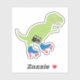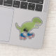 Un joli dessin d'un Tyrannosaurus vert Rex patinage à rouleaux de dinosaures et tenant une radio. Cadeau d'anniversaire idéal, décoration de garderie, art de chambre pour enfants, décoration de maison, retour à l'école ou toute autre occasion spéciale.