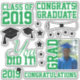 Créez une jolie page pour votre diplômé avec ce Stickers Green Grad. Vous pouvez personnaliser ceci avec la photo de la grade et l'année de cours en deux endroits. Des phrases comme "Vous l'avez fait", "Félicitations ! Graduate', 'Class of 2024', 'Grad' et 'Félicitations' sont en texte vert. Il est également doté de casquettes diplômés, diplômes et étoiles.