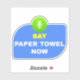 Ajoutez une touche d'humour à votre cuisine ou salle de bain avec cet autocollant "Say Paper Towel". Cette décalcomanie est un rappel amusant de remettre les serviettes en papier sur le rouleau. C'est un cadeau amusant et unique pour les colocataires, les partenaires ou toute personne ayant un sens de l'humour. Fabriqué en vinyle résistant à l'eau, cet autocollant est parfait pour coller sur les murs ou les armoires.