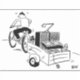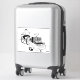 Autocollant DJ amusant. Pour le DJ Mobile. Disque Jockey sur un cycle avec une remorque portant ses joueurs de disques et ses platines. Dessin de Mobile Disco.