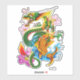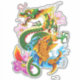 Un dragon chinois vert avec un koi orange avec fleurs de lotus et fleurs de cerisiers sur fond de bleu foncé.