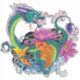 Un dragon d'eau chinois vert et violet avec un poisson koi orange, des fleurs de lotus, des fleurs de cerisiers sur fond de bleu