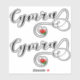 Police par script, avec le drapeau du Pays de Galles dans un coeur et le mot gallois Wales - Cymru. Mourir des autocollants coupés - 2 sur feuille.