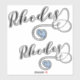Drapeau grec dans un coeur, avec Rhodes en police scriptée. Mourir des autocollants coupés - 2 sur feuille.