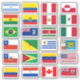 24 autocollants vinyliques coupés sur mesure avec les drapeaux de divers pays d'Amérique du Sud et du Nord; la collection comprend les drapeaux de l'Argentine, Brésil, Chili, Colombie, Venezuela, Pérou, Paraguay, Uruguay, États-Unis d'Amérique, Mexique, Canada, et d'autres