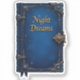 Une belle couverture de livre bleu avec des détails dorés complexes et des étoiles, avec le titre "Night Dreams". Idéal pour la journalisation de rêve, les amateurs d'imaginaires ou les collections à thème.