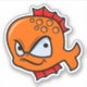 Adorable poisson rouge caricature en colère. Il a un corps orange et des nageoires rouges. Ses yeux sont grands avec une expression drôle mais en colère. Sa bouche est dans un demi-sourire qui ajoute à son look comique.
