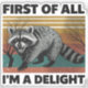 Citation amusante Raccoon Design rétro - "Tout d’abord, je suis un plaisir" | Cute Sarcastic Animal Art | Humour Faune Cadeau pour la nature Les Lovers Apportez une touche d’amusement, de sass et de charme sauvage à votre journée avec cette Drôle Citation Raccoon Design - "Tout d’abord, je suis un plaisir". Doté d'une illustration audacieuse et enjouée de raton laveur avec un arrière - plan vintage au coucher du soleil, cette oeuvre d'art ludique allie à merveille humour rétro et style sauvage. Idéal pour les amoureux des animaux, les amateurs de sarcasmes et les amateurs de plein air, ce design s'adapte parfaitement à tous les produits Zazzle - t-shirts, tasses, autocollants, sacs fourre-tout, cabines téléphoniques et décor maison. Parfait comme un cadeau de raton laveur, une surprise d'anniversaire sarcastique ou un accessoire de camping excentrique, il ajoute de la personnalité à tout ce que vous portez ou portez. Que vous aimiez les paroles drôles d’animaux, les créatures forestières ou l’esthétique rétro de l’extérieur, ce design dit tout — vous êtes un régal, et vous le savez! Ajoutez ce design raccoon vintage unique à votre collection ou offrez-le à quelqu'un qui aime l'humour et la nature sauvage combinés. Idéal pour les hommes, les femmes, les ados et les amis avec un sens sarcastique de l'humour.