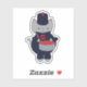 Do you love the drums and marching band? This sticker features a gray cat wearing a navy blue and red marching band uniform while playing the snare drum.