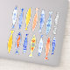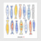 Poisson coloré dans les tons bleu, orange et jaune. Inspiré par les sardines méditerranéennes et le design scandinave, ce sont les couleurs parfaites pour n'importe quel équipement ou papeterie favori. 13 autocollants individuels de poisson sur une feuille. Main peinte par Heidi Horchler.