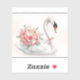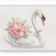 This elegant illustration features a graceful white swan adorned with a delicate bouquet of soft pink roses, symbolizing love, beauty, and timeless romance.