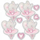 Ces adorables autocollants de contour présentent un mignon éléphant gris habillé d'un tutu rose et de chaussons de ballet. Elle tient un coeur rose avec une bordure fleurie. Avec les quatre autocollants d'éléphant sont quatre autocollants cardiaques individuels. Parfait pour la Saint Valentin ou les baby showers !